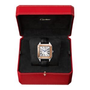 Cartier Santos-Dumont Watch Large Model, Quartz Movement, Pink Gold, Steel, Leather-P17311045