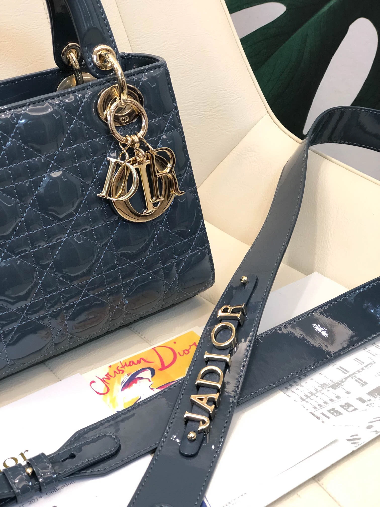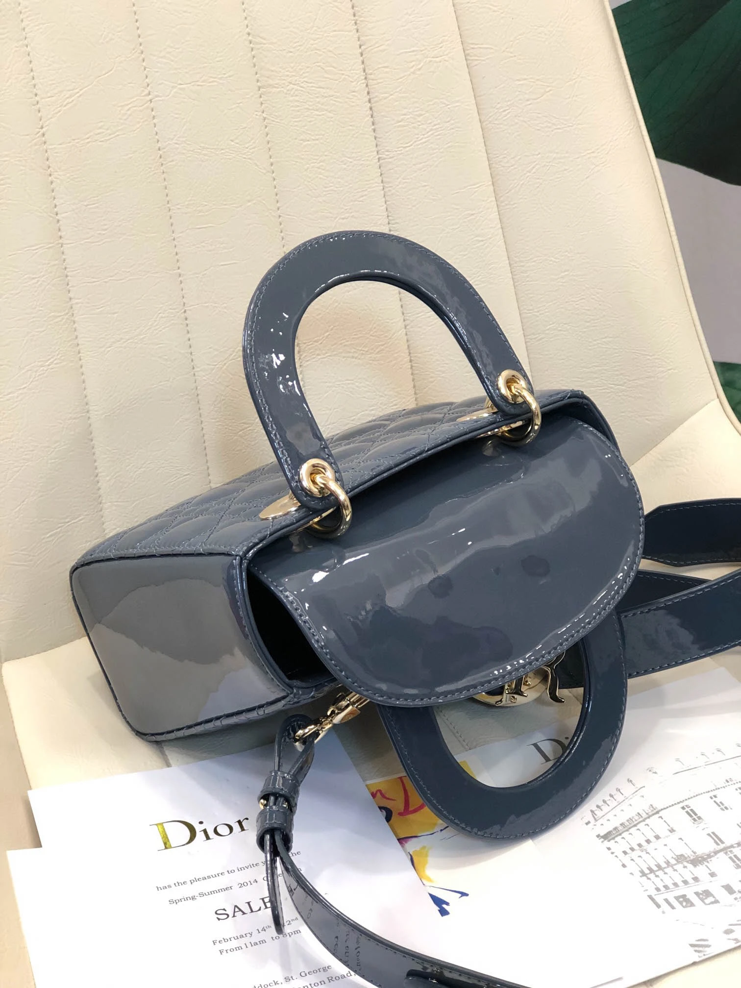 ABCDior Calf Patent Leather Rattan Lattice Tote Size 20 x 16.5 x 8cm