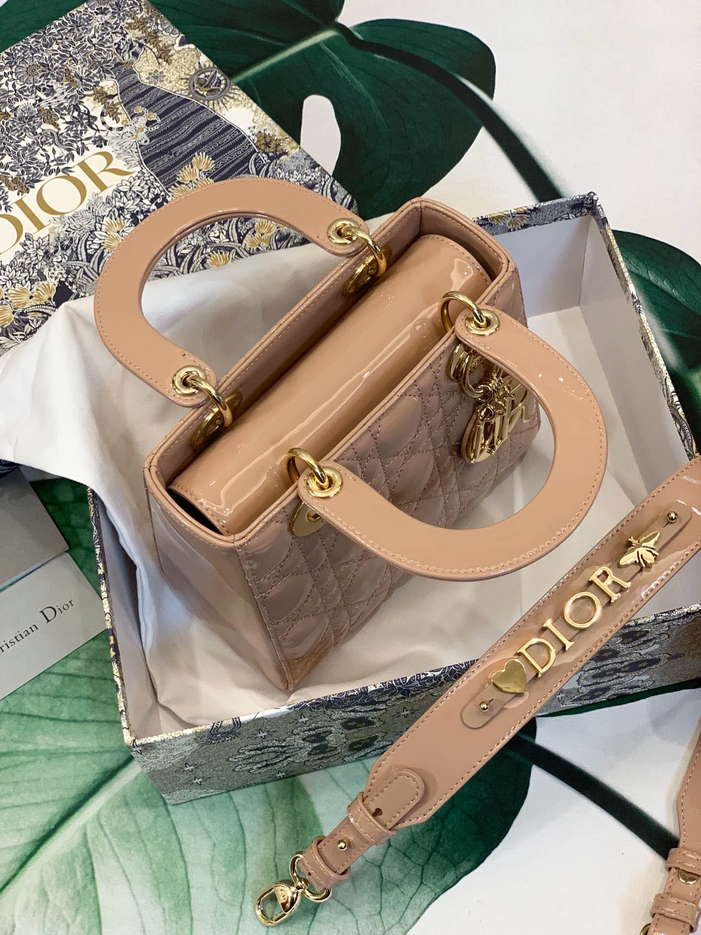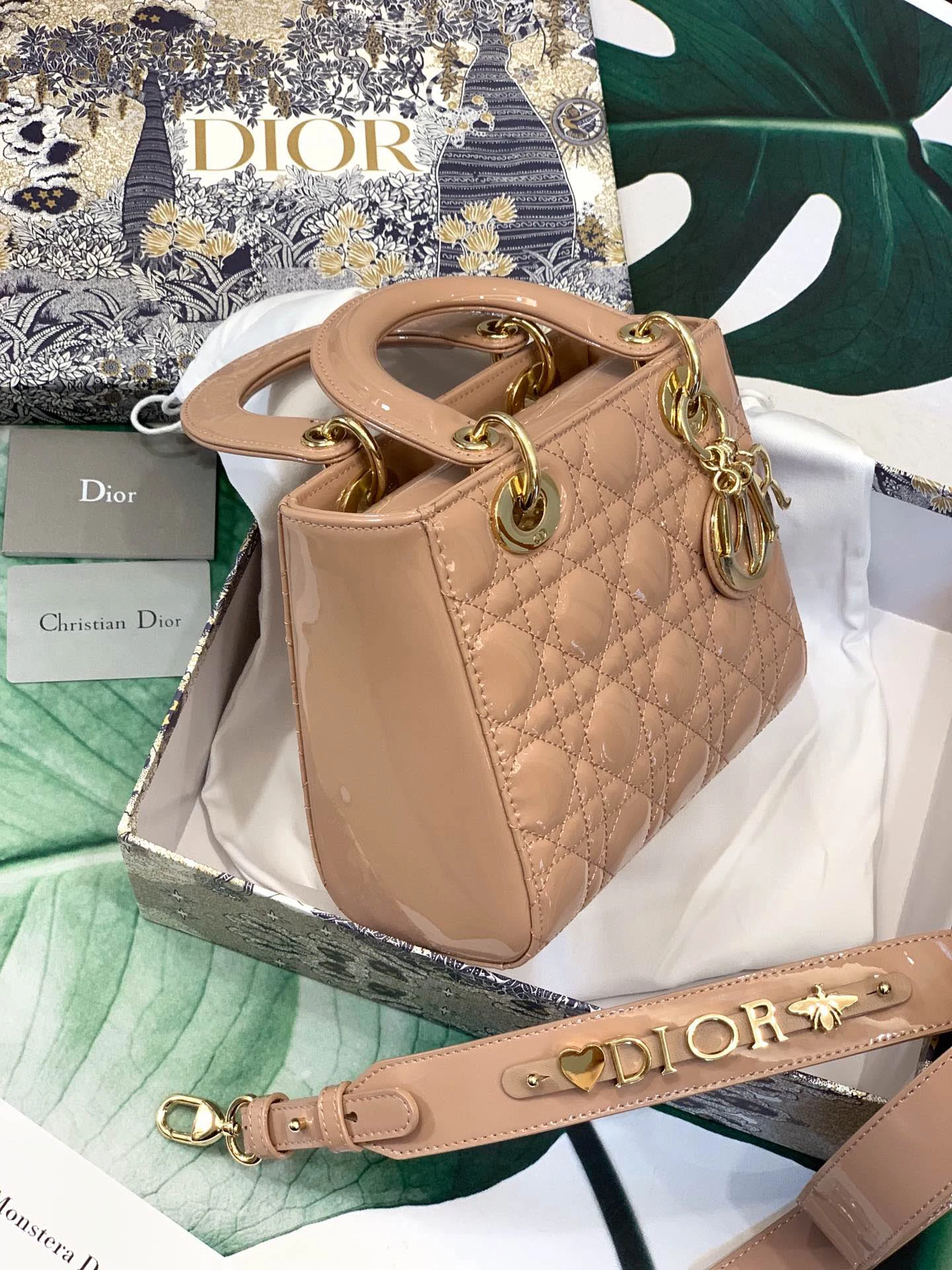 ABCDior Calf Patent Leather Rattan Tote Size: 20 x 16.5 x 8cm