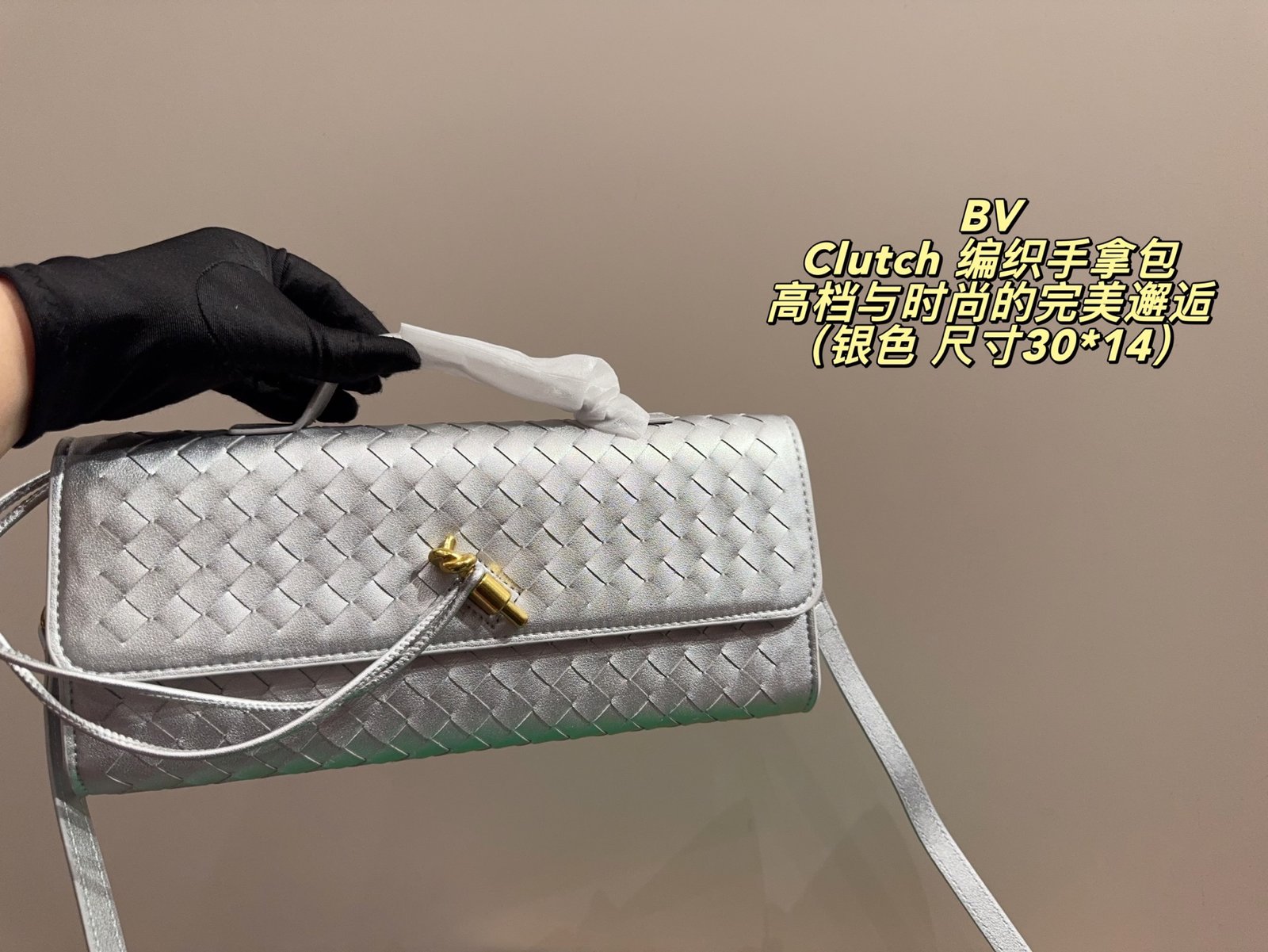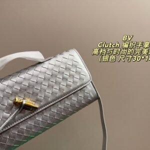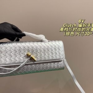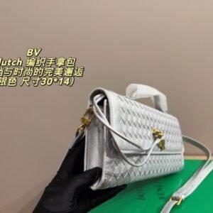 • Intrecciato leather top handle clutch with metallic knot closure