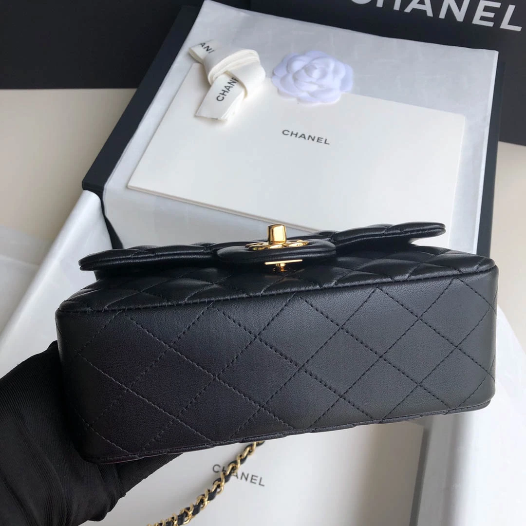 Black Lambskin Gold Buckle