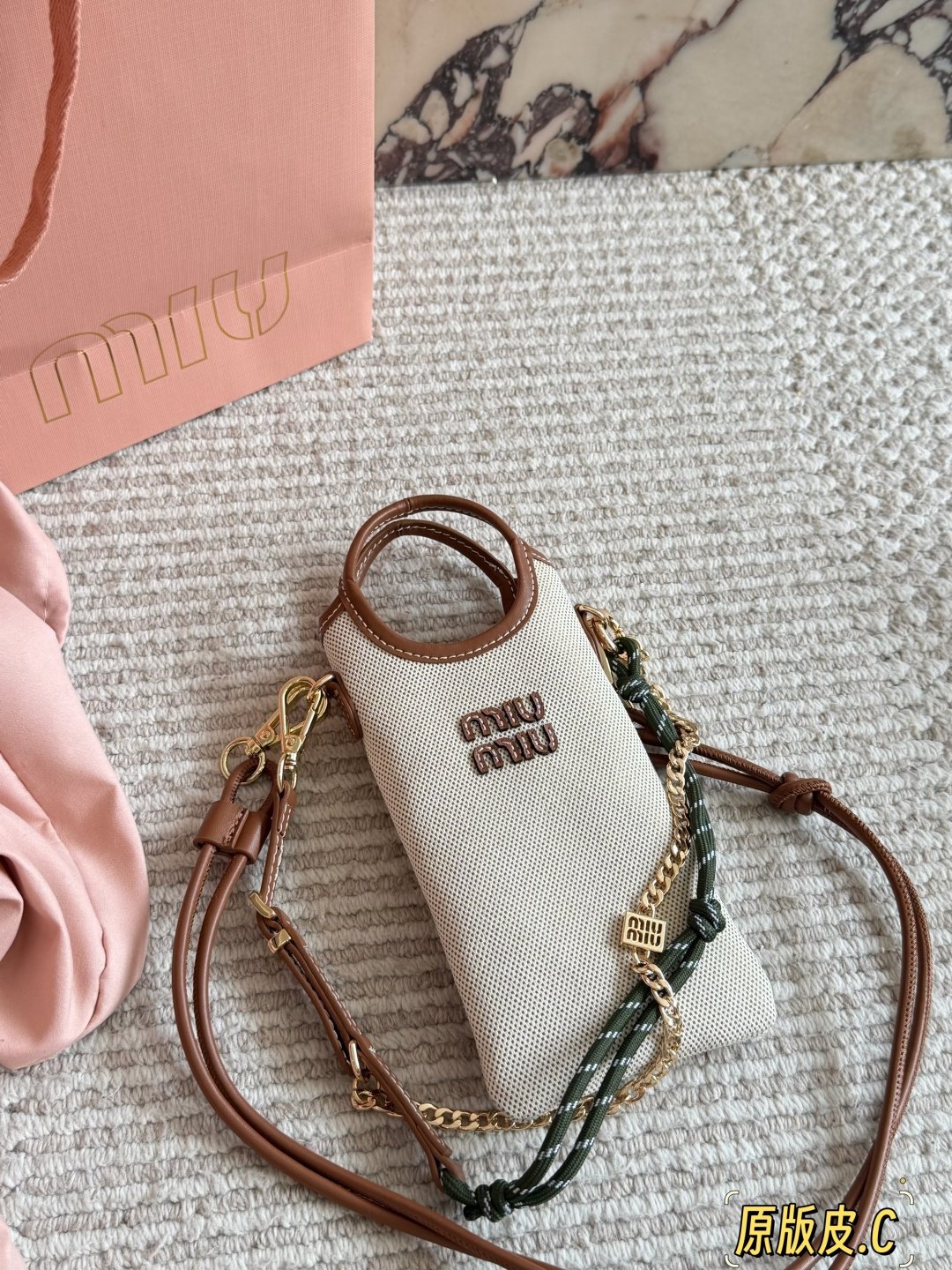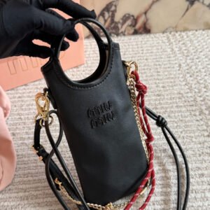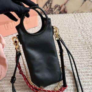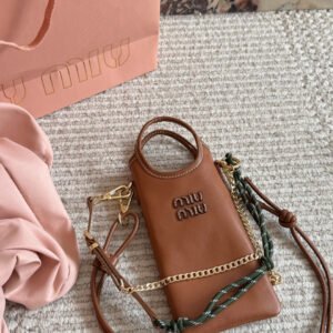 This smartphone case inspired by the iconic Ivy bag can be worn over the shoulder or held by hand, expressing the playful sophistication of Miu Miu style.
