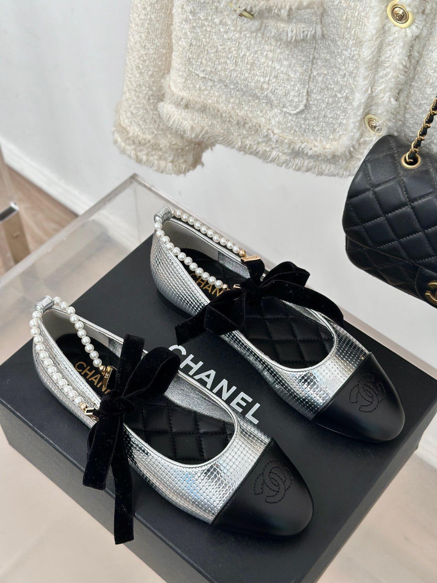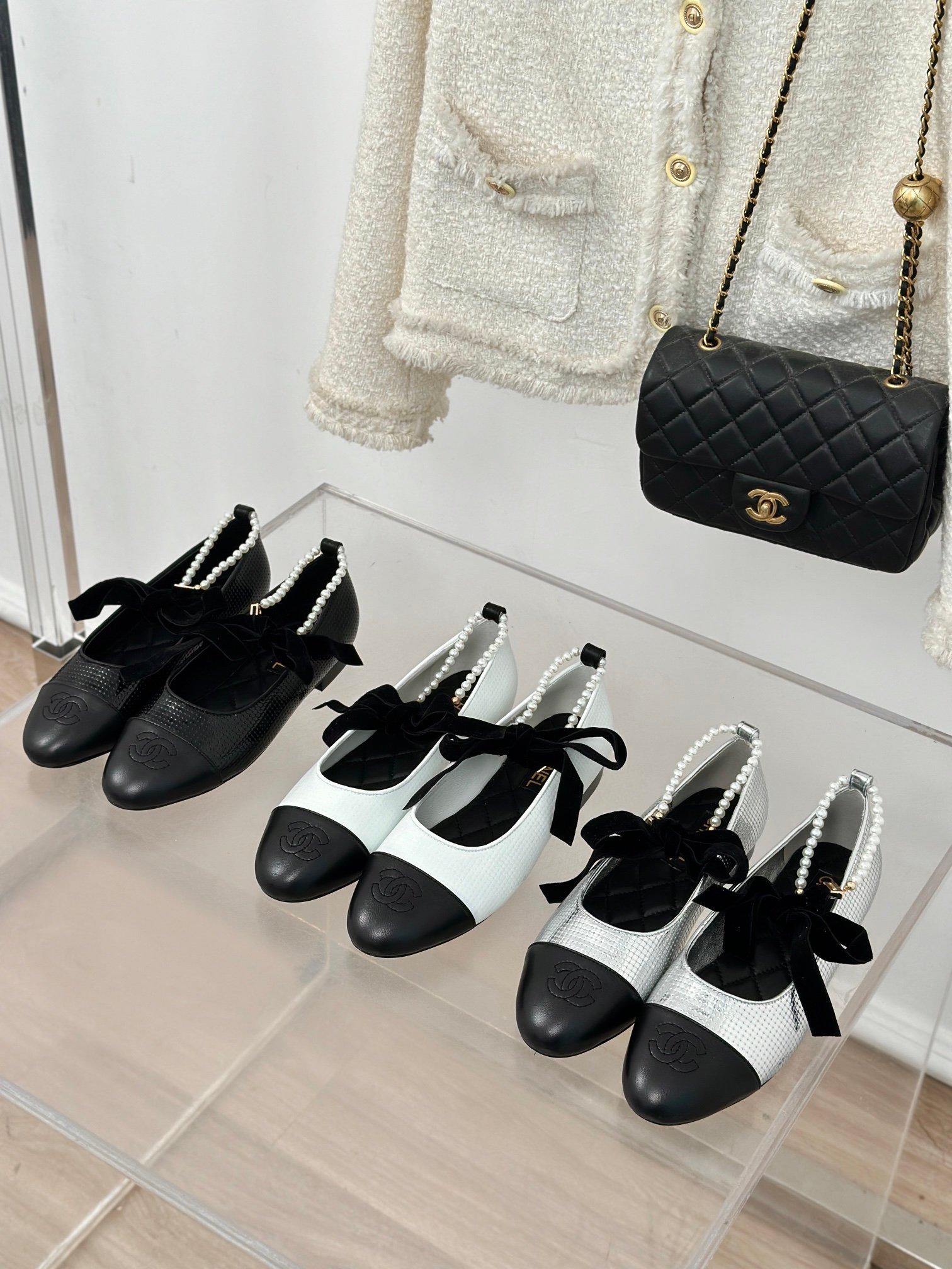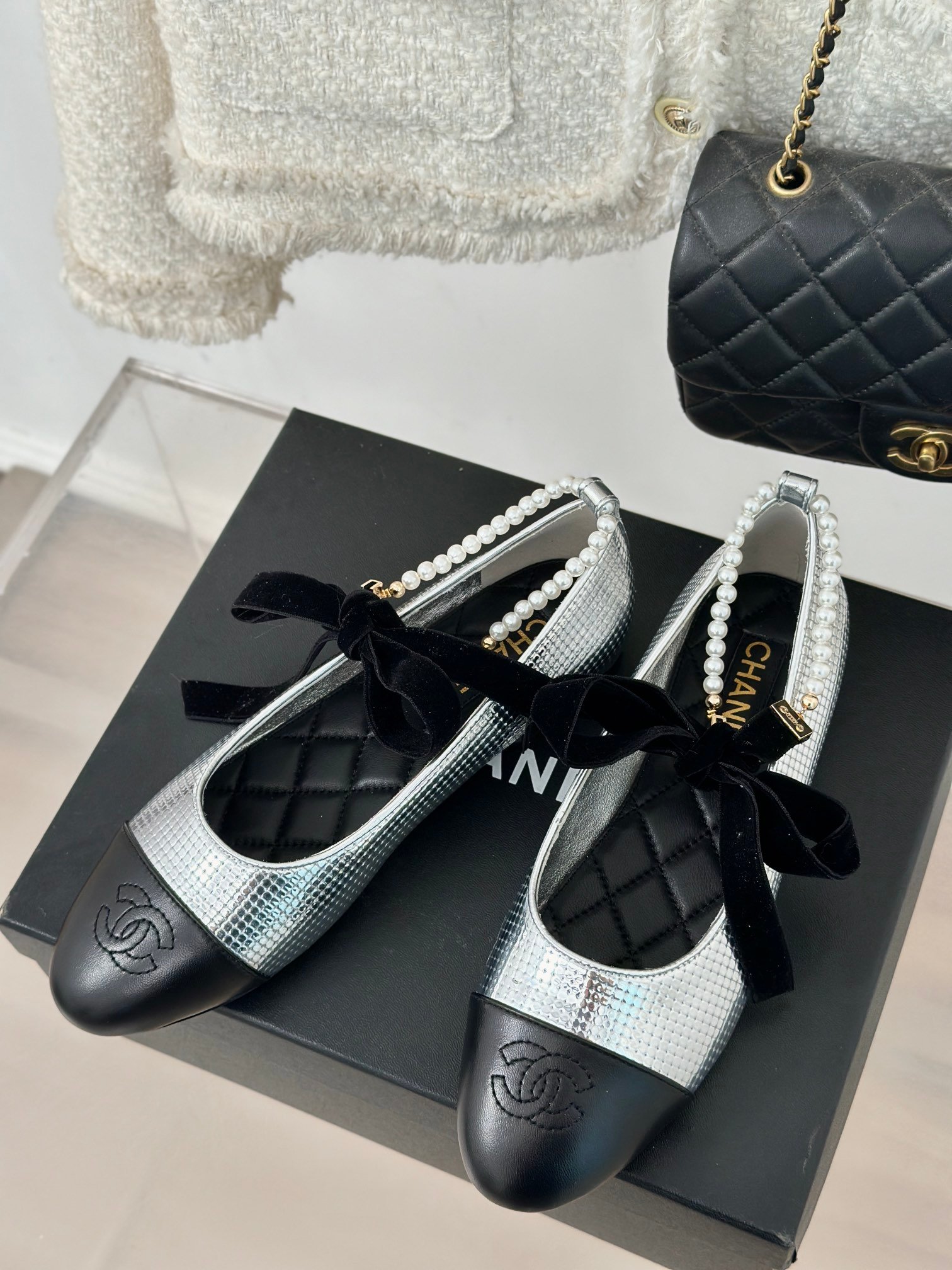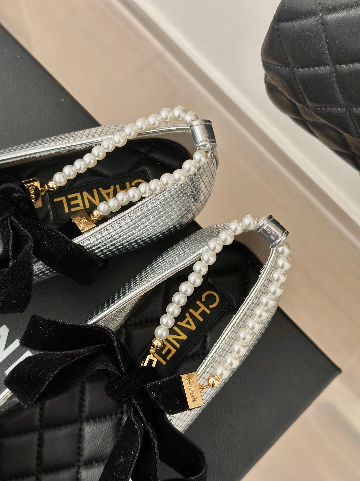 CHANE* | Chanel classic pearl chain anklet Mary Jane shoes