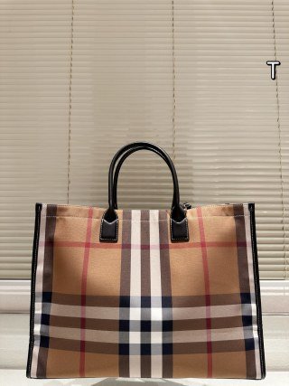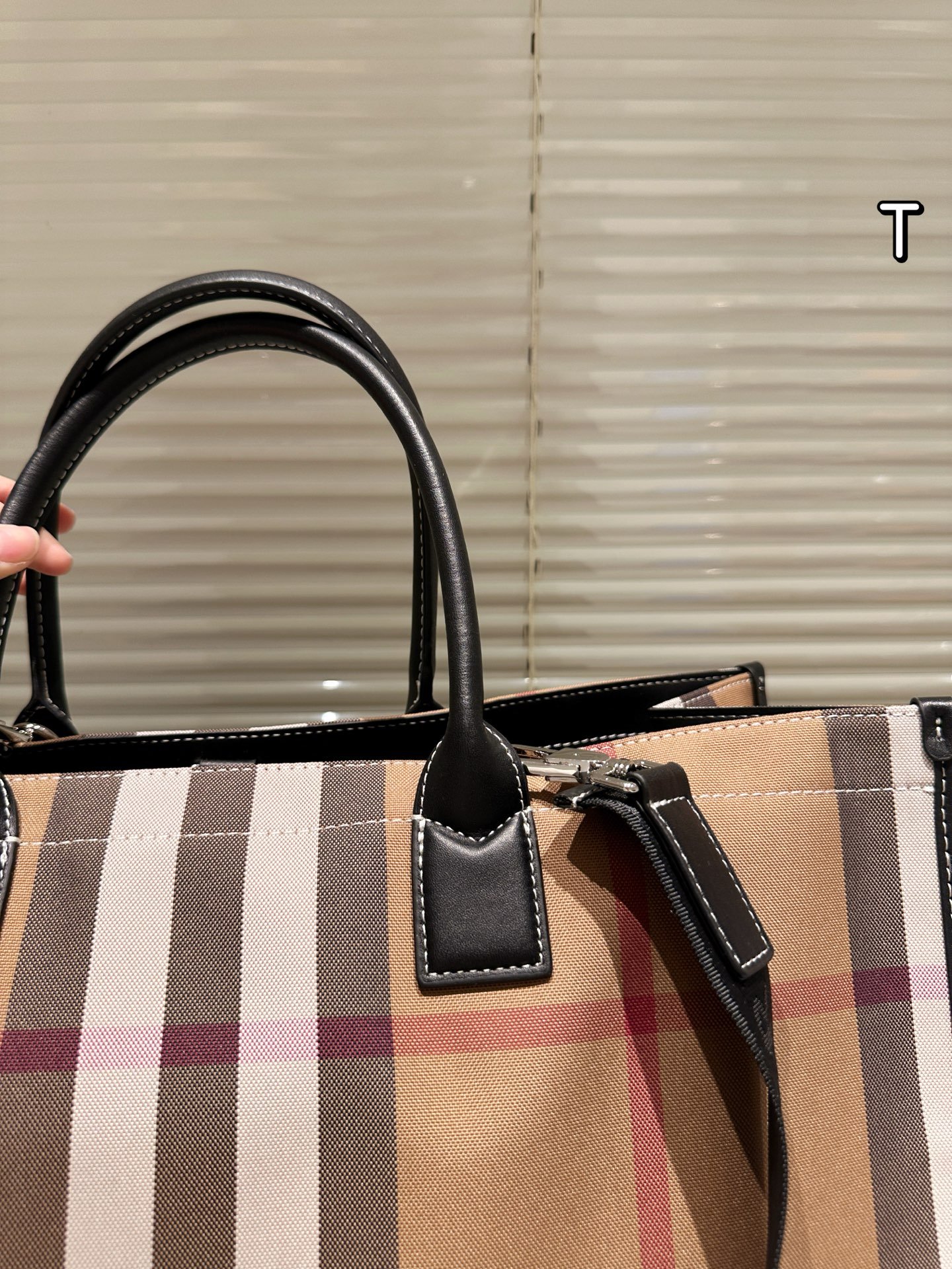 - A spacious tote bag made in Italy from Burberry Check trimmed with topstitched leather and lined in a cotton blend. Inspired by an archival design, it features a magnetic front pocket.