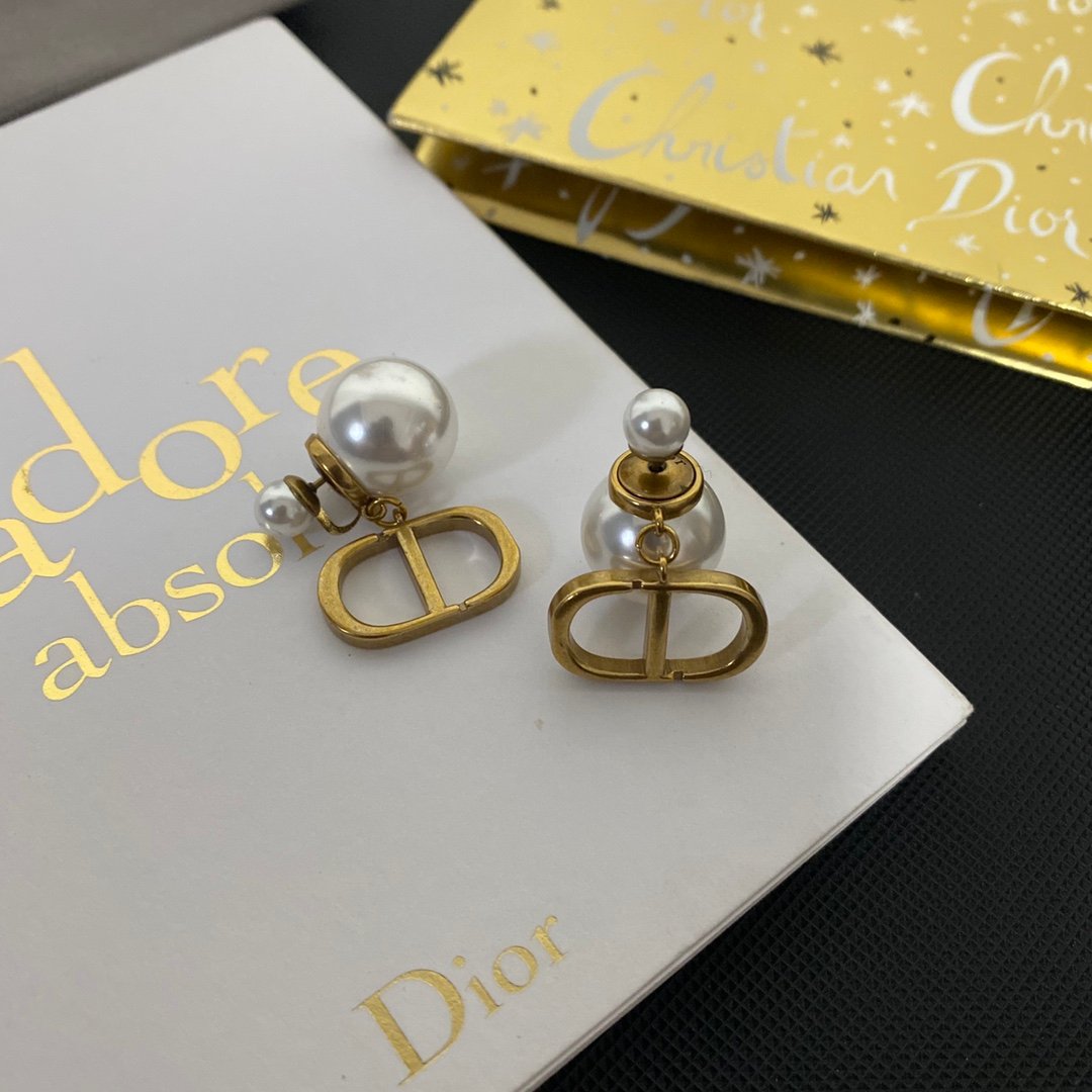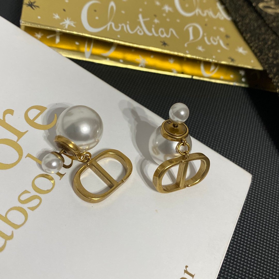 The Dior Tribales earrings are bold and timeless. Composed of two white resin pearls, they are completed by antique gold-finish metal CD initials, inspired by the 30 Montaigne line. The design is a prime example of the evolution of one of the House’s most iconic styles and will elegantly adapt to any look.