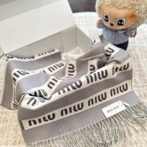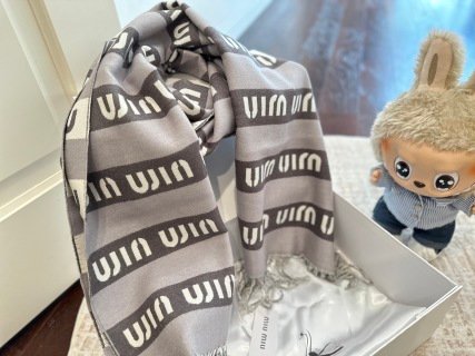 gray and white scarf