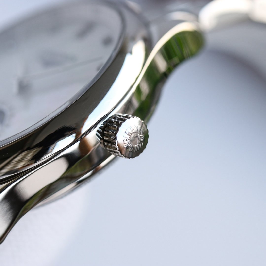 Water-resistant to 3 bar, scratch-resistant sapphire crystal, with several layers of anti-reflective coating on both sides.