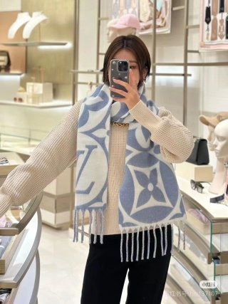 LV Medallion Scarf Light blue