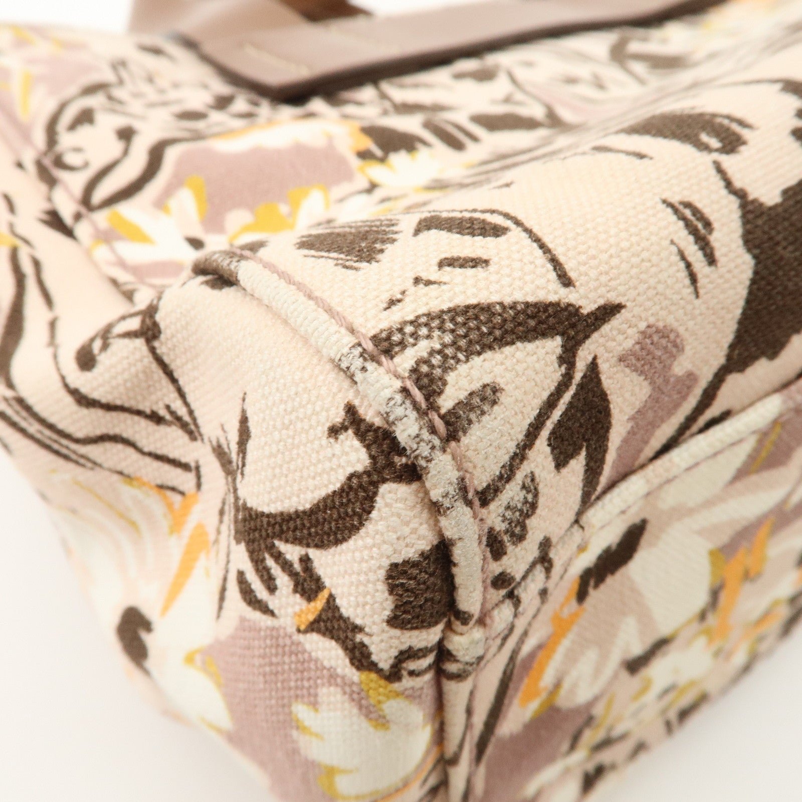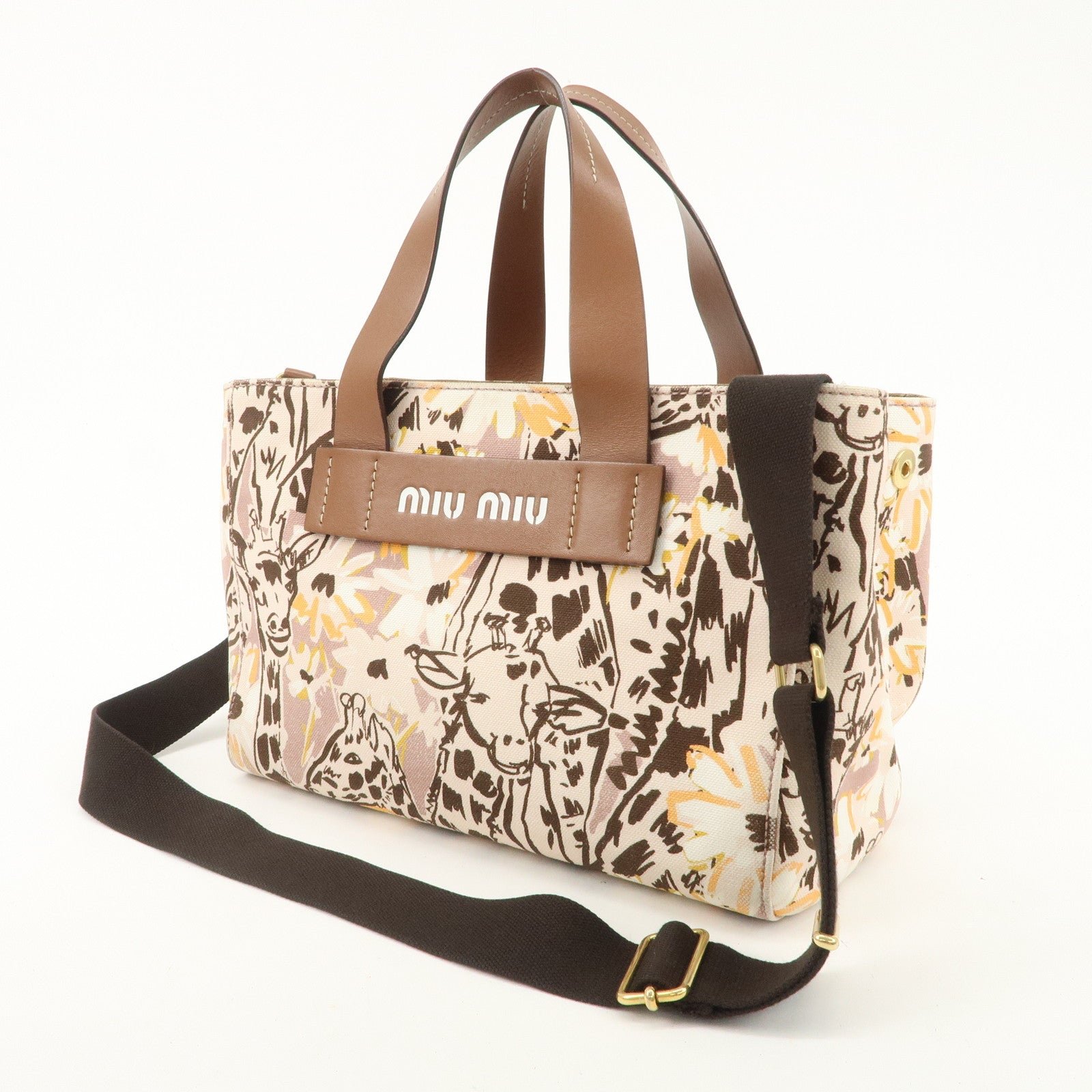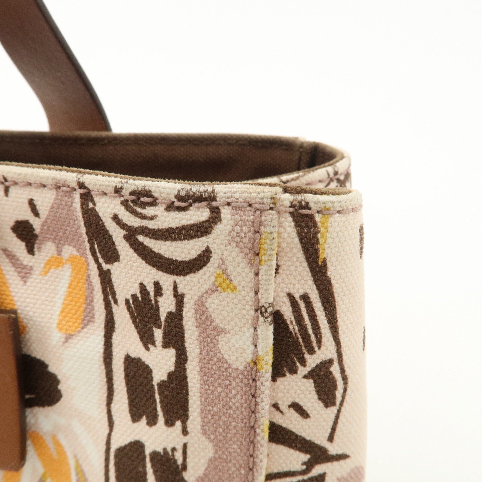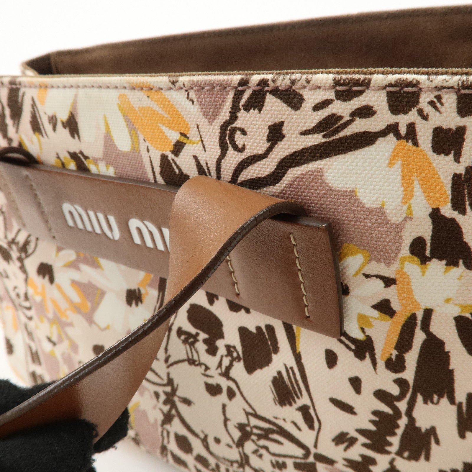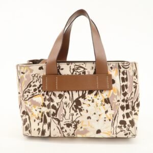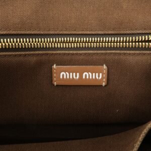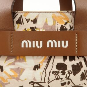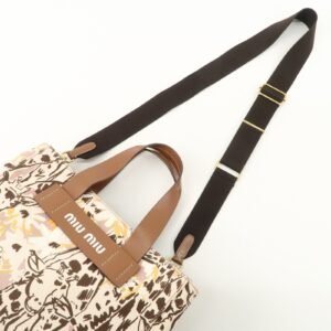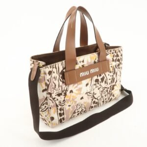 MIU MIU Leather Canvas 2Way Hand Bag Tote Bag Brown Pink 5BA085 Used