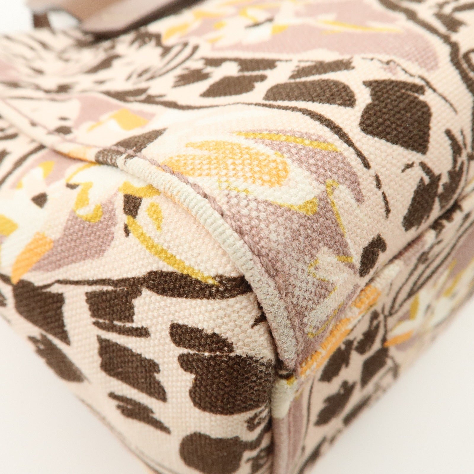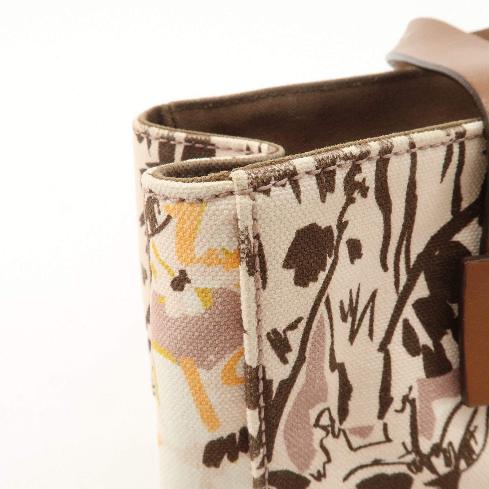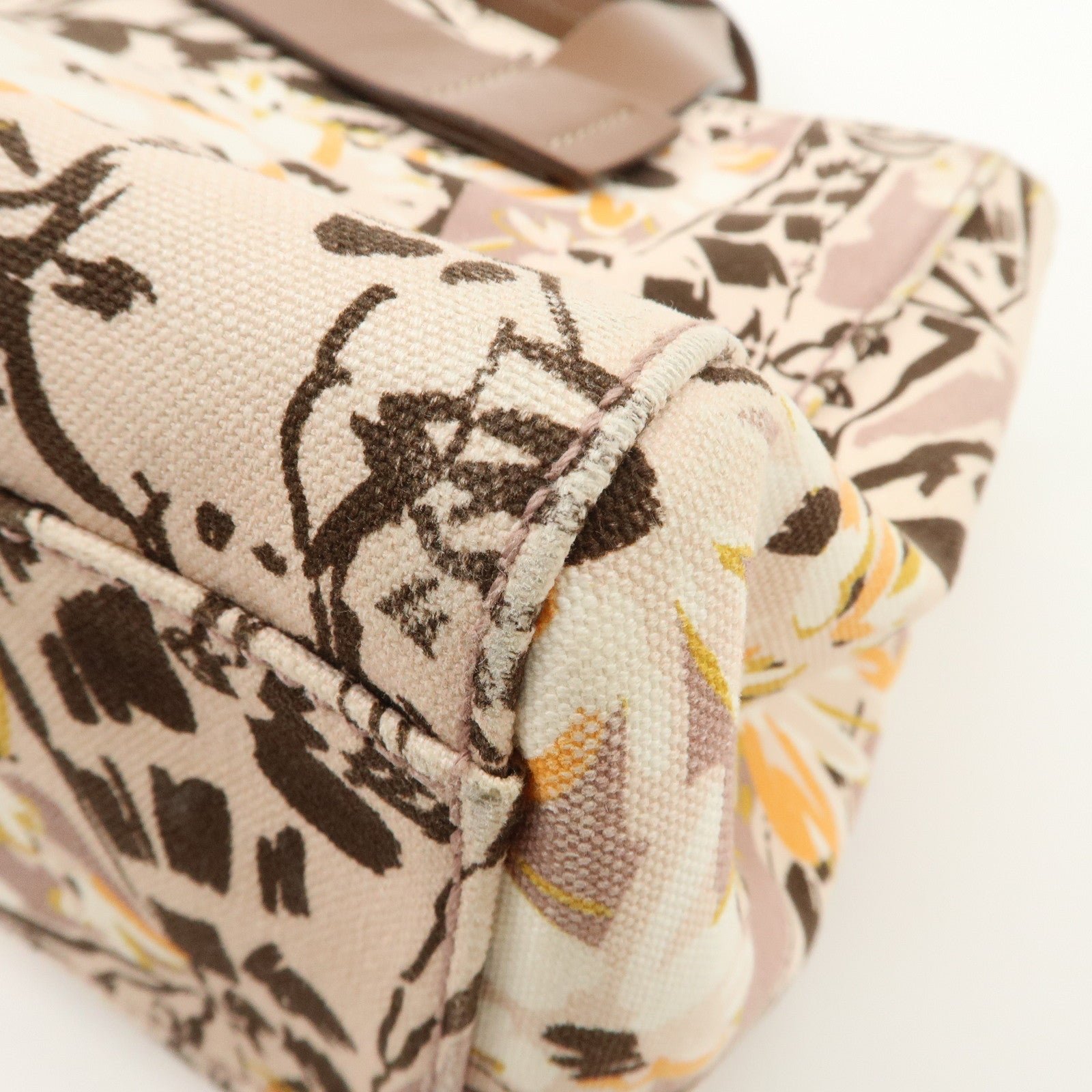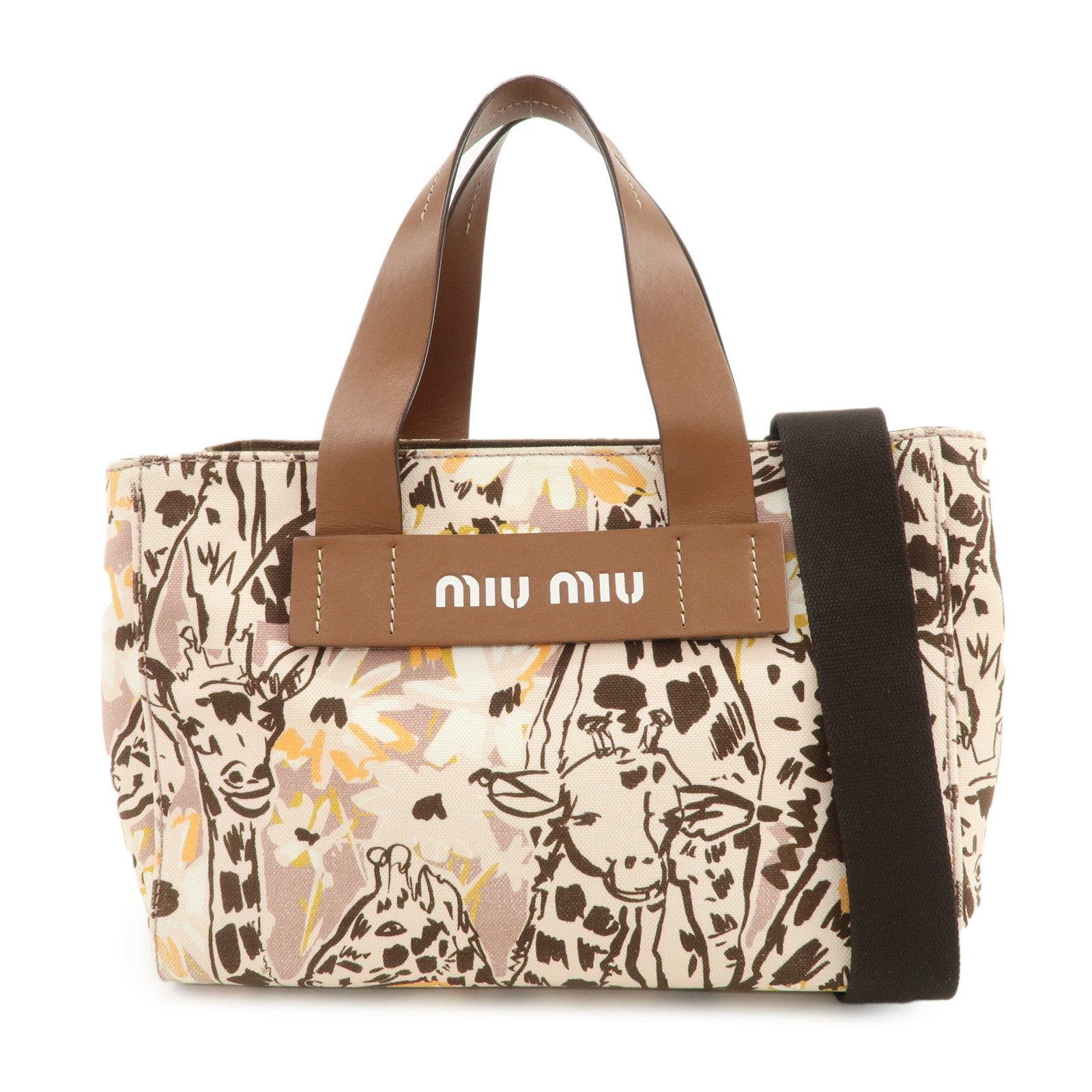 MIU MIU Leather Canvas 2Way Hand Bag Tote Bag Brown Pink 5BA085 Used