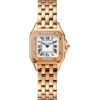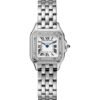 Panthere de Cartier watch, small model, quartz movement. Case in steel, crown set with a synthetic blue spinel, silvered dial, blued-steel sword-shaped hands, steel bracelet,