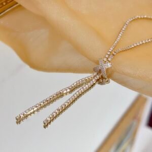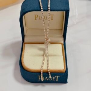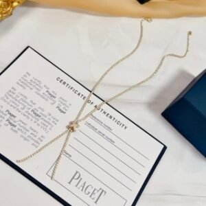 A rose, enhanced by diamonds and lit up by the warm gleam of rose gold, blooms at the curve of the neck. Like a lucky charm, it slides along its chain according to the wish of the wearer, from the heart to the top of the neckline. This emblematic Piaget flower explores the sensual metaphor while moving with delicate elegance.