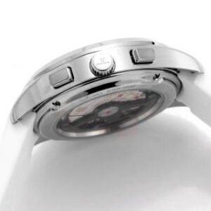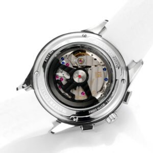 Underlined by the sleek, modern design of its 42mm steel case, the Polaris Chronograph and its ocean grey dial captivate the eye with their visual depth. A complex process carried out by hand with a double gradient from light to dark, 35 layers of lacquer are applied before being finished by meticulous polishing. Powered by in-house Calibre 761, which promises a 65-hour power reserve, this watch – ideal for accompanying your daily adventures – features an integrated chronograph, whose sophisticated mechanism includes a column wheel with vertical clutch. Offered with a pair of interchangeable straps in black rubber and blue-grey fabric, the Polaris Chronograph is the perfect blend of performance and elegance.