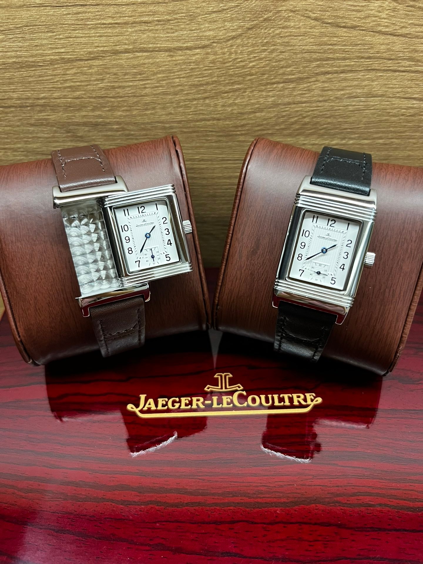 The large-format case of the Reverso Classic Large Duo Small Seconds timepiece in steel boasts two dials for two time zones, driven by a single movement. An ideal companion for elegant travelers, it is equipped with a small front second dial that further enhances its charm.