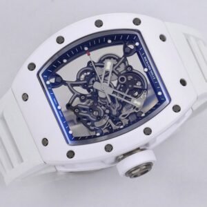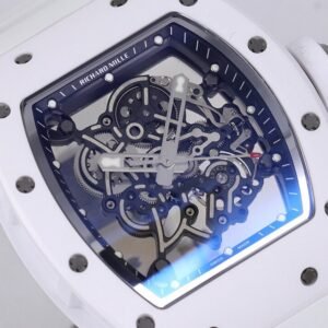 At the heart of the RM055 White Bubba Watson lies the Calibre RMUL2, a skeletonized manual winding movement with a power reserve of 55 hours. It offers various functions, including hours, minutes, and seconds display. Water-resistant up to 30 meters, this timepiece is as reliable as it is stylish.