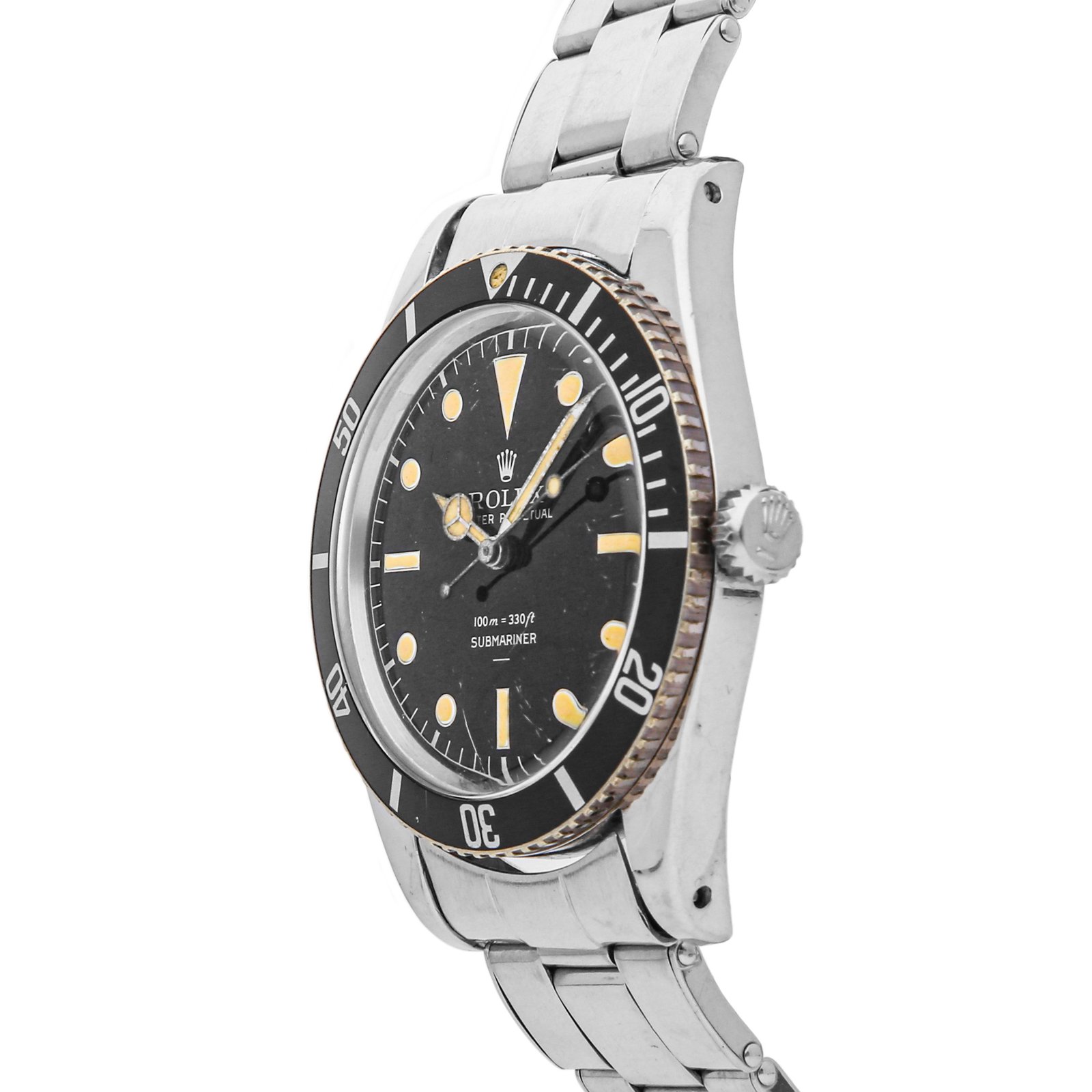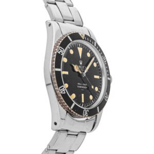 Pre-Owned Rolex Submariner (6536) self – winding automatic watch, features a 38mm stainless steel case surrounding a black dial on a stainless steel Rivet bracelet with folding buckle. Functions include hours, minutes and seconds. This watch does not come with box or papers. 300,000 Serial.We are selling this watch in “as is” condition and without a warranty!