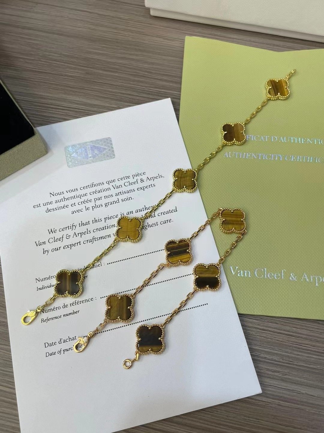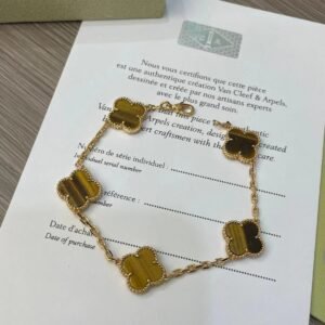 Vintage Alhambra bracelet, 5 motifs, 18K yellow gold, tiger’s eye.