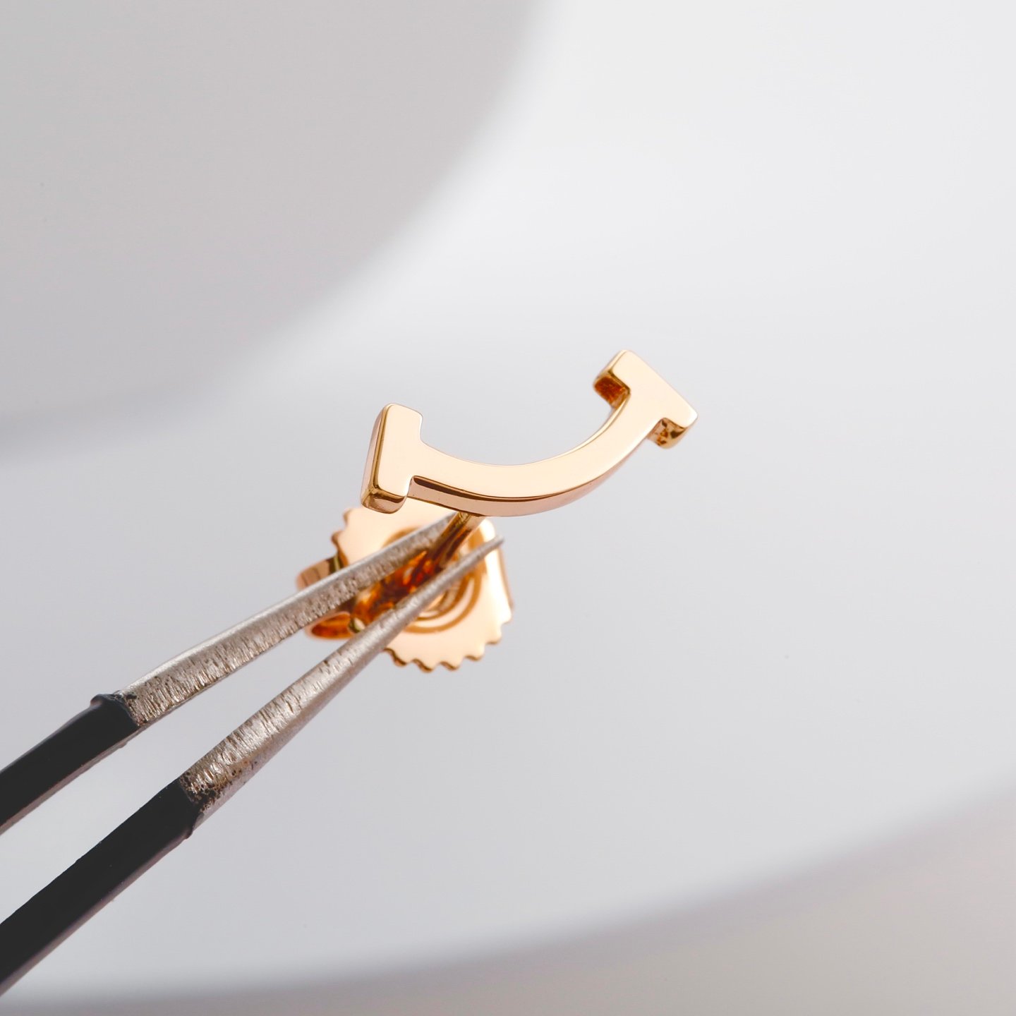 Tiffany T is an expression of love’s endless potential. Inspired by an archival bracelet from 1975, T is an homage to the House’s iconic motif and the spirit of New York, which founder Charles Lewis Tiffany regarded as the place of promise and possibilities. With a simple twist, our designers turned the linear T into a smile, a universal symbol of happiness. These elegant and playful 18k rose gold earrings stand out styled by themselves or with a Tiffany T smile pendant.