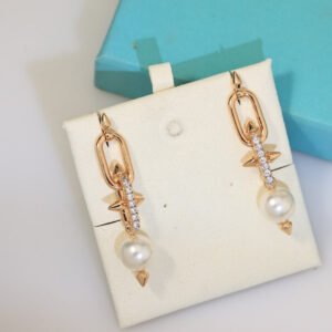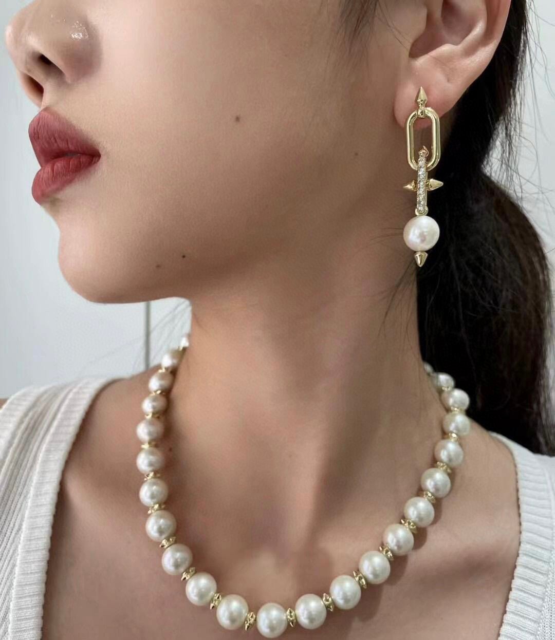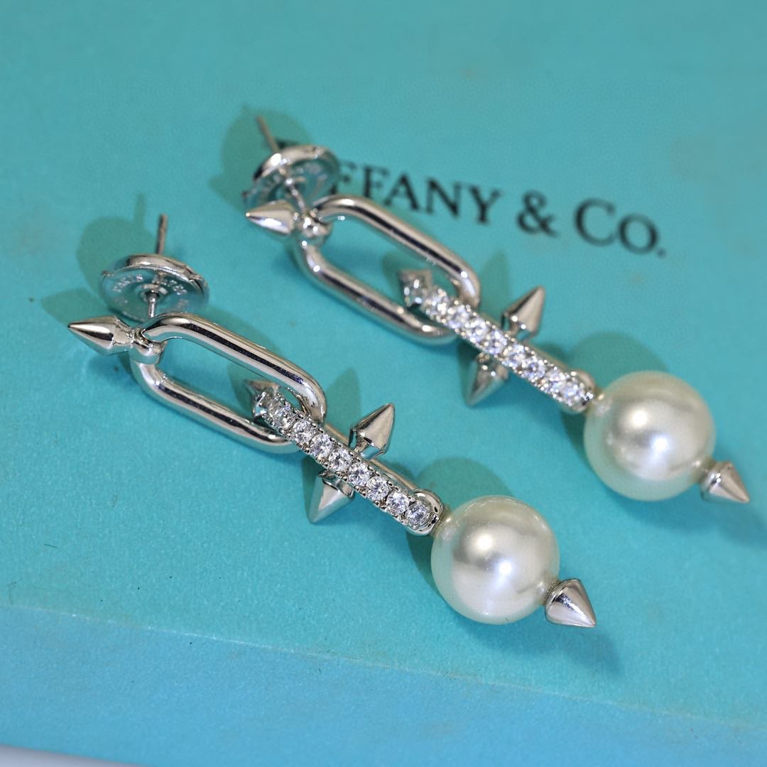 Building on the House’s legacy of collaborating with visionary artists, Tiffany Titan by Pharrell Williams is an expression of rebellious creativity. These designs draw inspiration from Poseidon and his trident. An angular spear-shaped motif crafted from 18k gold appears on each side of the large-scale pearls, while reverse-set diamonds allow light to enter from every angle, maximizing brilliance.