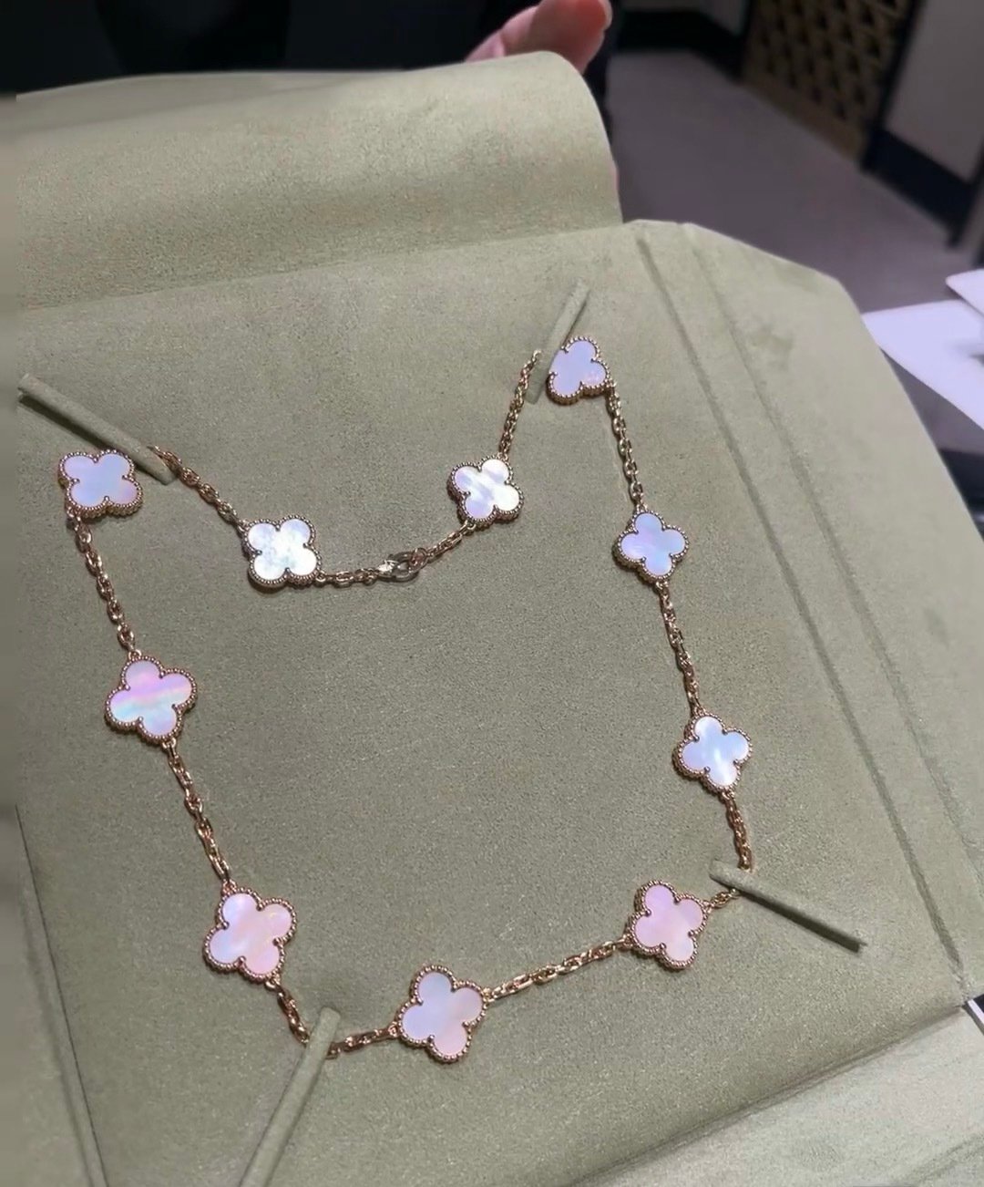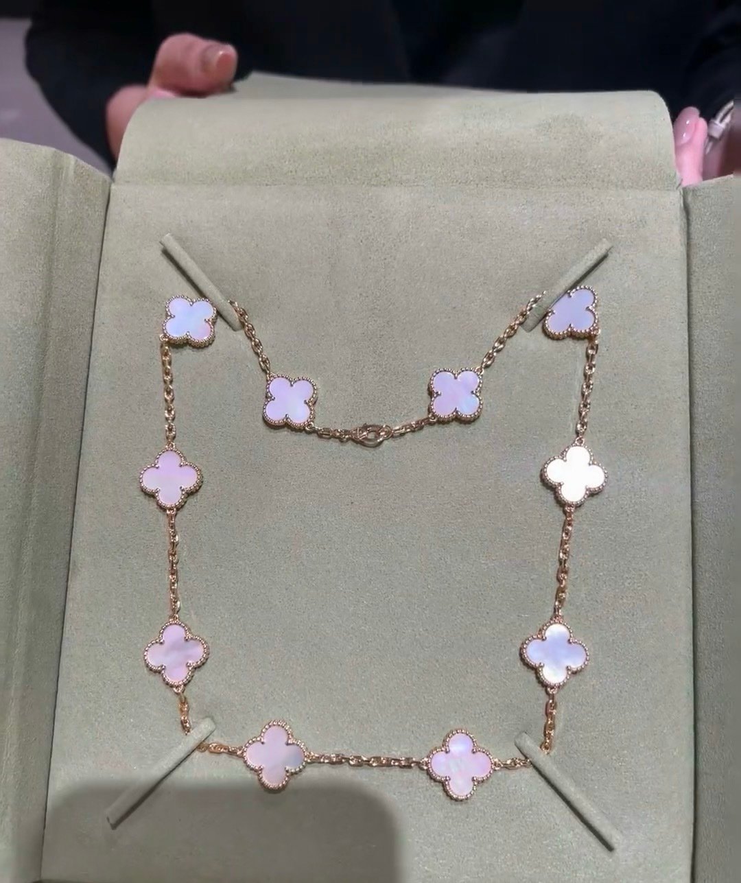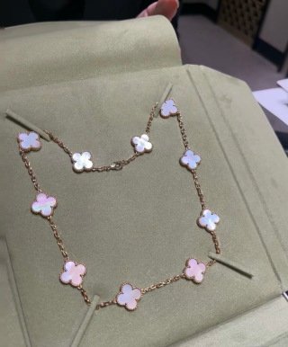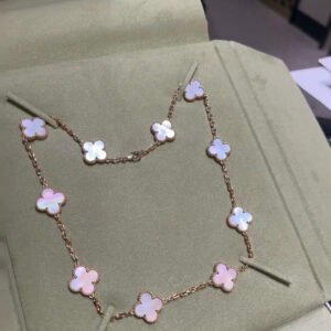 intage Alhambra necklace, 10 motifs, 18K yellow gold, pink mother-of-pearl.