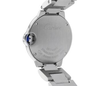Floating like a balloon and as blue as the cabochon safely nestled in its side, the Ballon Bleu watch by Cartier adds a dash of elegance to male and female wrists alike. Roman numerals are guided on their path by a deep blue winding mechanism. The convex curves of the case, guilloché dial, sword-shaped hands, and polished or satin-finish links of the bracelet ensure that the Ballon Bleu watch by Cartier floats within the world of Cartier watchmaking.